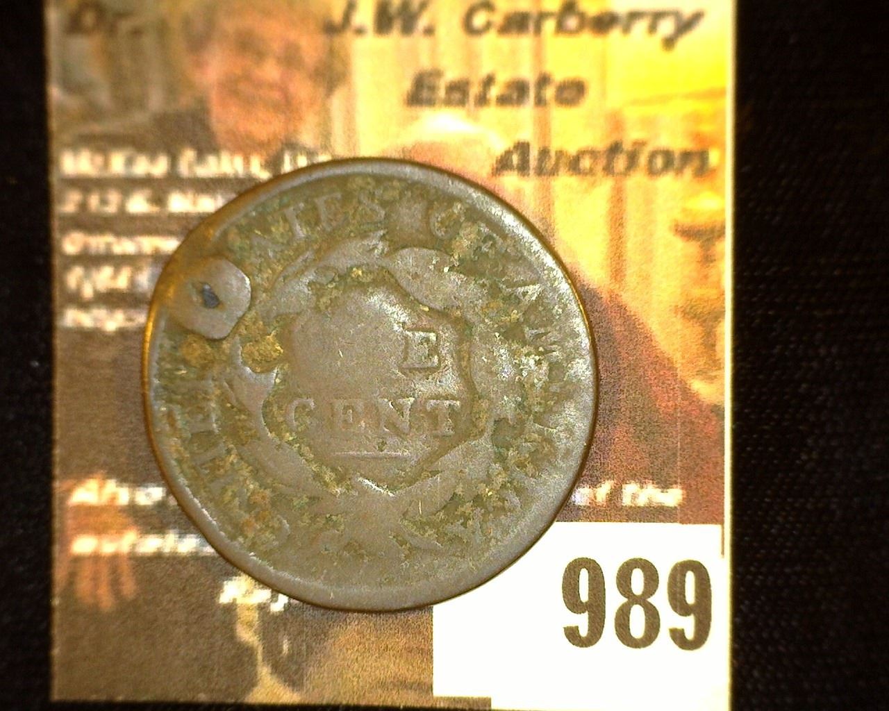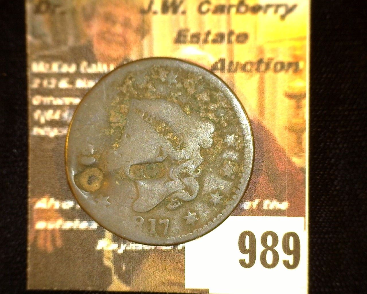 989.1817 U.S. Large Cent with Guadelupe counterstamp "RF". 'Doc' says this is a 19th Century fake.