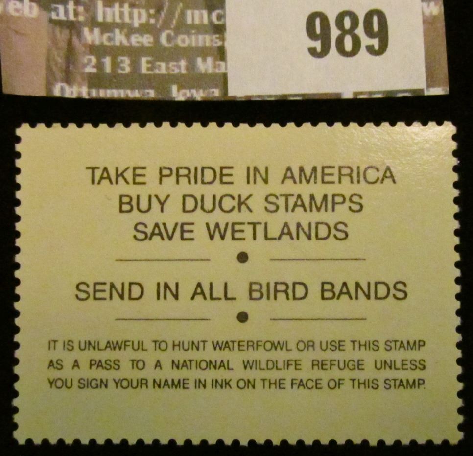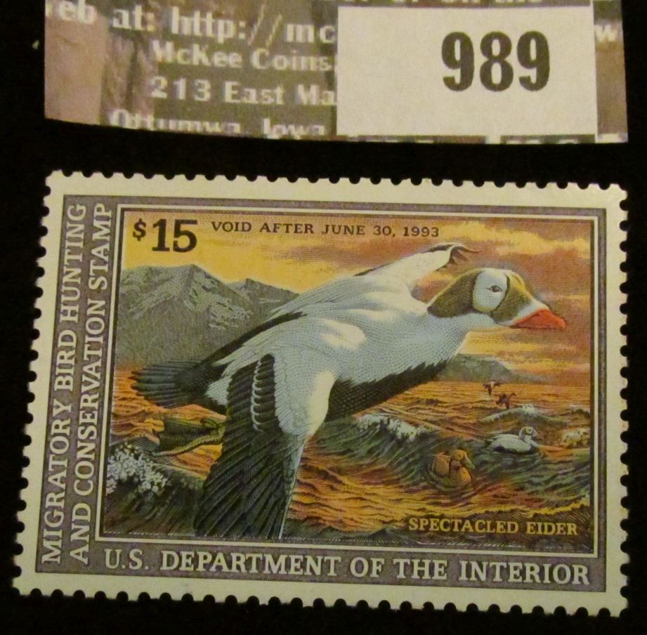989 _ 1992 RW # 59, Fifteen-Dollar U.S. Department of Agriculture Migratory Bird Hunting Stamp, unsi