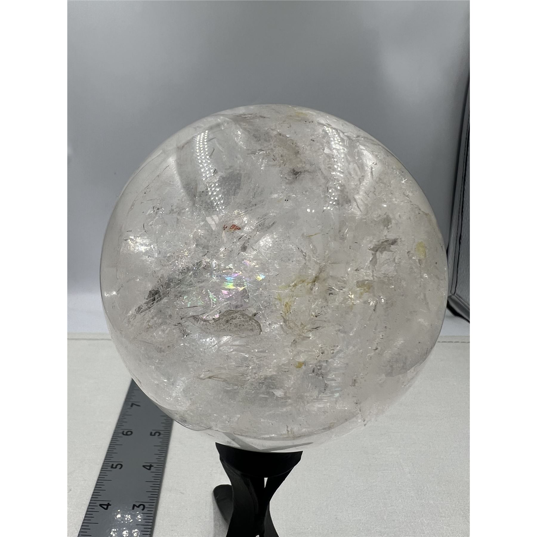 99.0 MM LARGE CLEAR QUARTZ SPHERE WITH YELLOW HEALER.