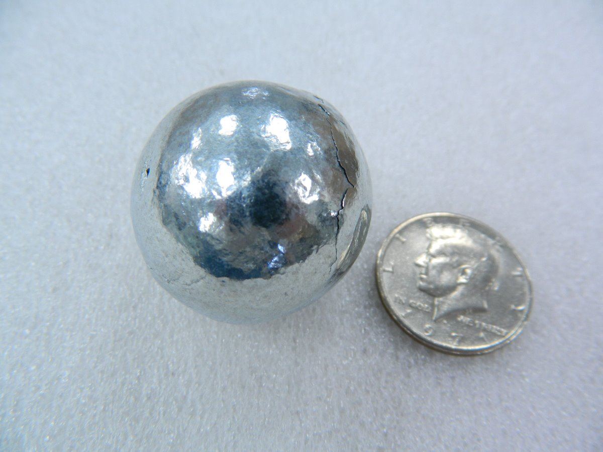99.995% Pure Zinc Bullion Ball, Actual Weight = .475 pound, 1.57" in diameter