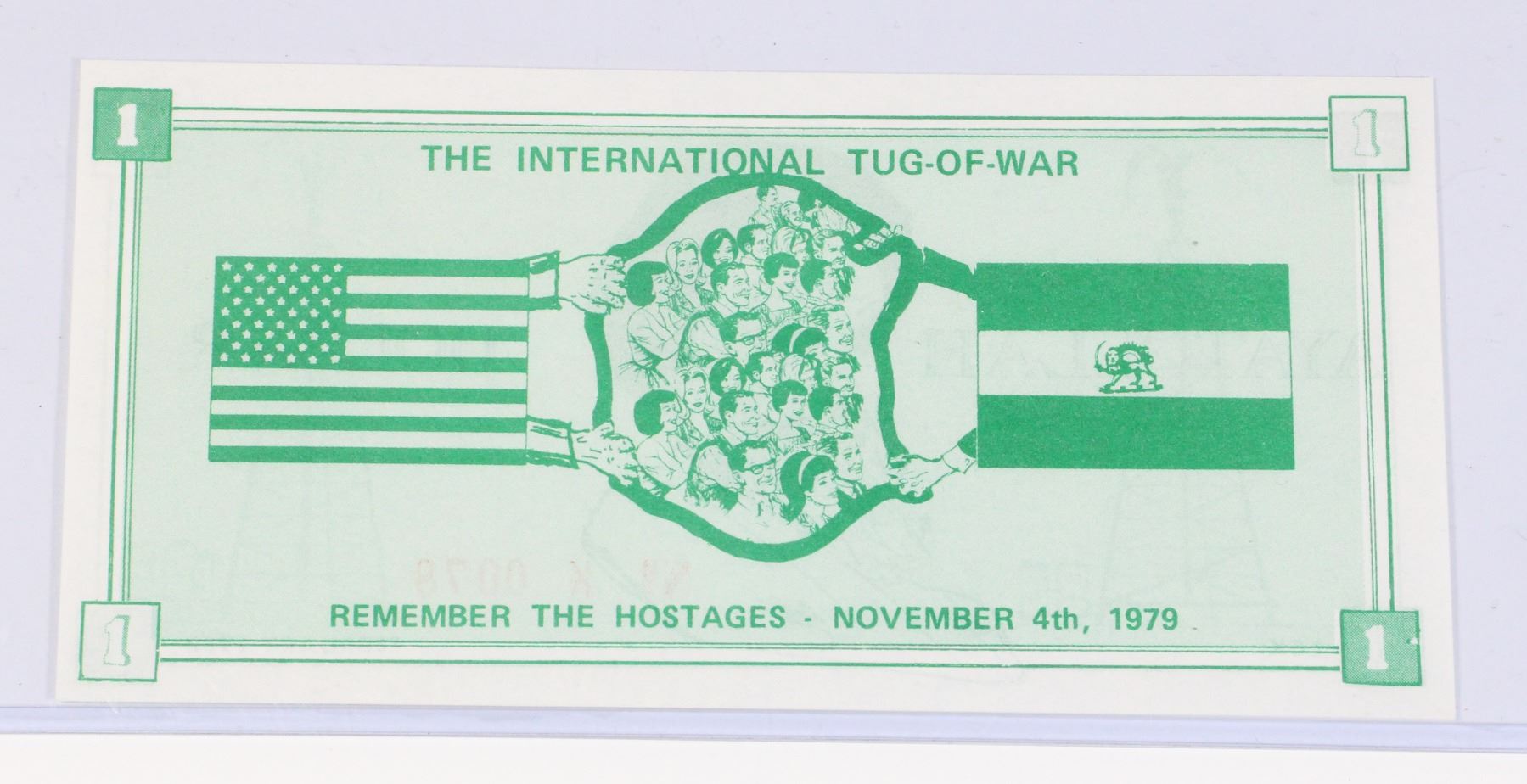 NOVELTY PROPAGANDA BILL THE INTERNATIONAL TUG OF WAY REMEMBER THE HOSTAGES NOVEMBER 4TH 1979