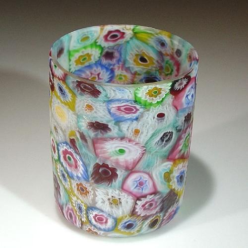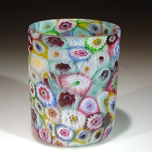 Italian millefiori tumbler, composed of assorted, colorful, close-packed, complex canes. Height 3 5/8", diameter 3". NO RESERVE