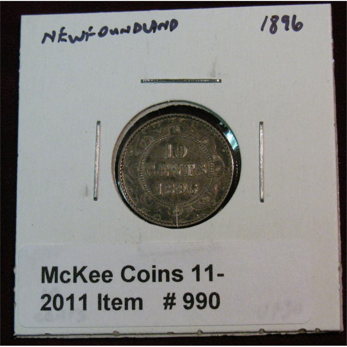 990. 1896 New Foundland 10-Cents. VF+. Cat. $100.00.