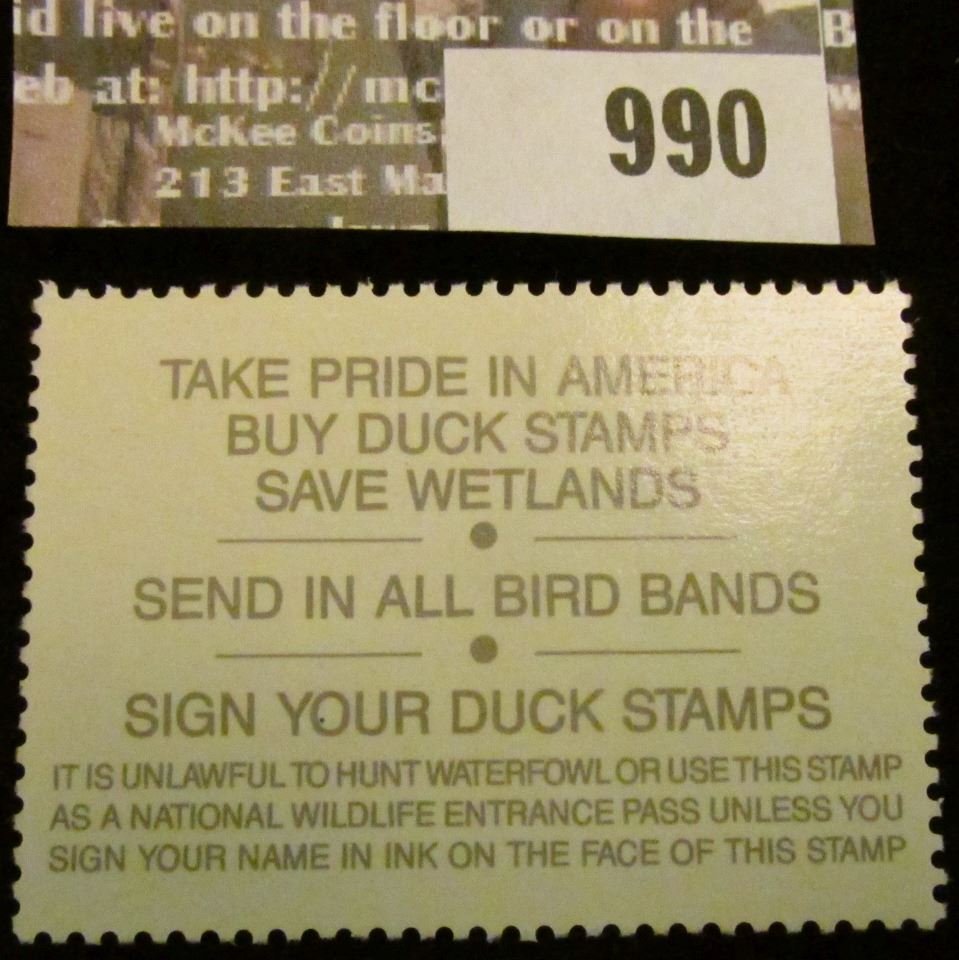 990 _ 1990 RW # 57, $12.50 U.S. Department of Agriculture Migratory Bird Hunting Stamp, unsigned, VF