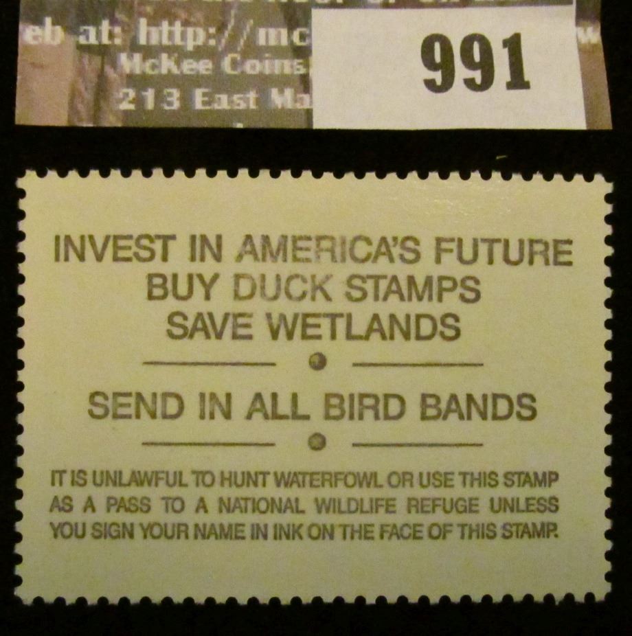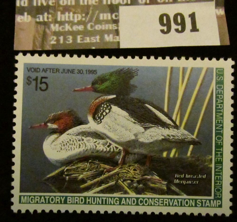 991 _ 1994 RW # 61, Fifteen-Dollar U.S. Department of Agriculture Migratory Bird Hunting Stamp, unsi