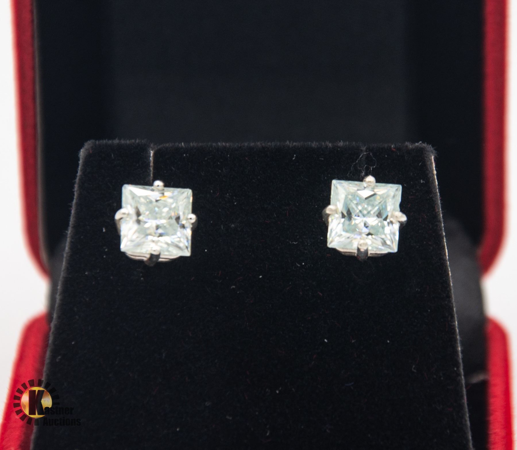 CUSTOM HAND SET 4.00 CT TW PRINCESS CUT MOISSANITE STONES VVS D COLOR SET IN 925 SILVER BASKET EARRINGS **ALL ITEMS MUST BE REMOVED BY 5PM SATURDAY, NOVEMBER 16TH 2024. ALL REMAINING ITEMS WILL BE SUBJECT TO A $6.00 PER DAY STORAGE CHARGE. ANY ITEMS REMAINING AFTER MONDAY, DECEMBER 2ND 2024 WILL BE CONSIDERED FORFEITED. NO REFUNDS WILL BE ISSUED FOR FORFEITED ITEMS. TO SCHEDULE A PICK UP APPOINTMENT CLICK HERE