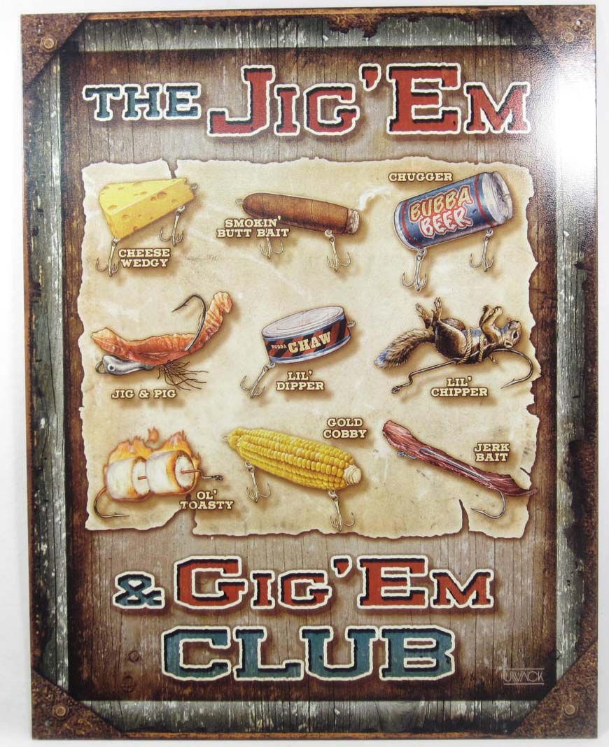 9964 - THE JIG EM AND GIG EM CLUB FUNNY METAL SIGN