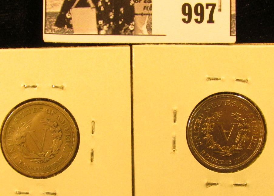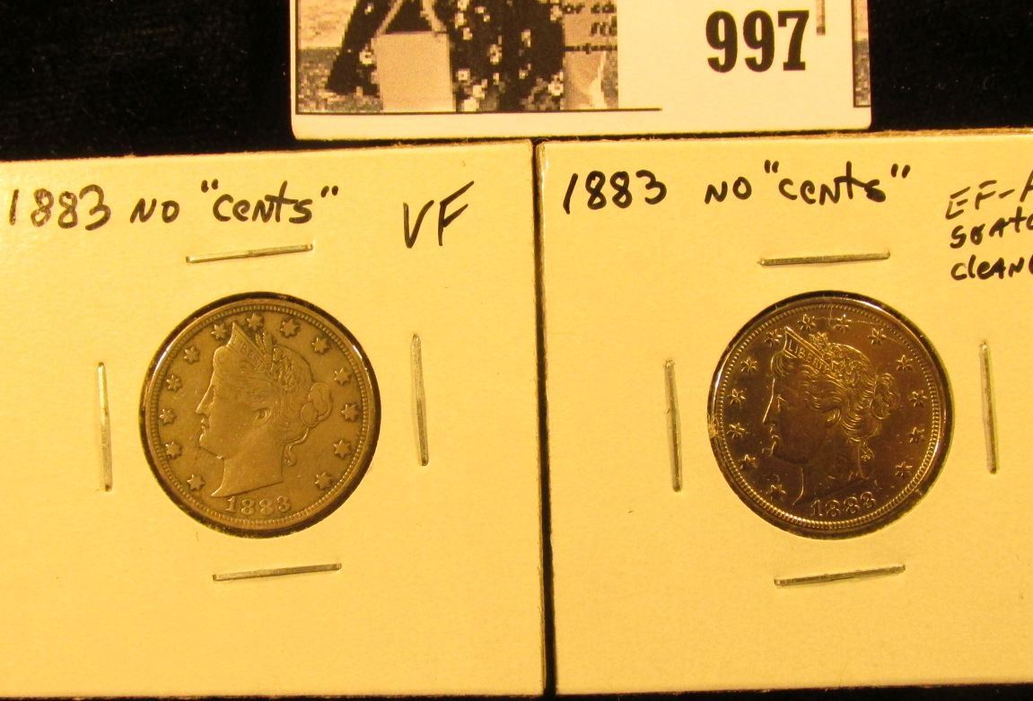 997 . Pair of 1883 NC U.S. Liberty Nickels, VF & EF (scratched and cleaned).