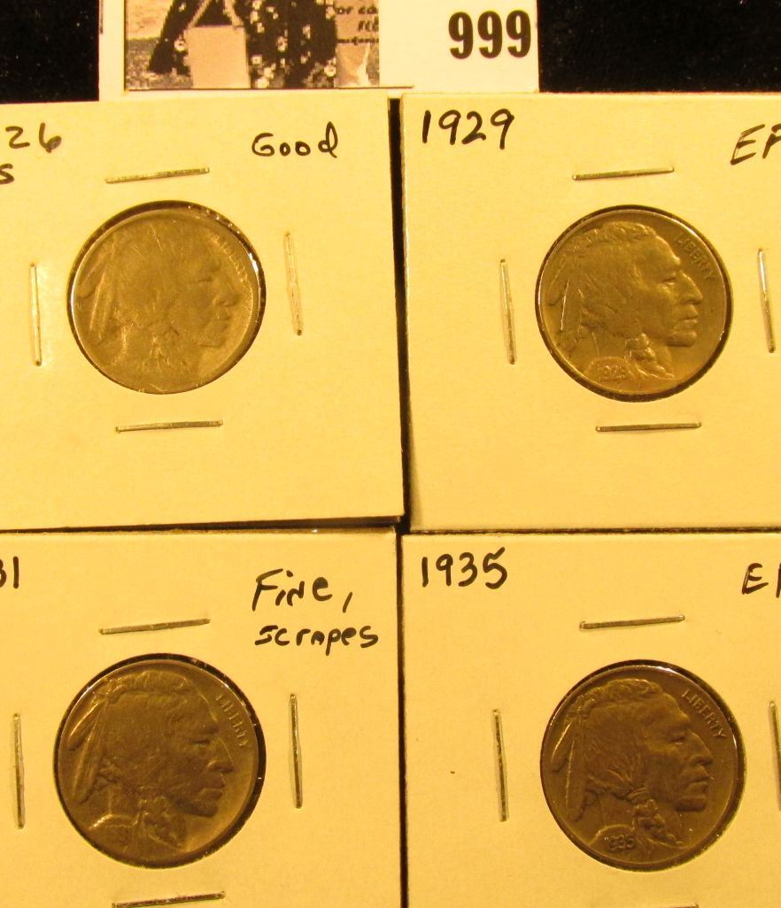 999 . 1926 S Good,. 31 S Fine with scrapes, 29 P EF, & 1935 P EF Buffalo Nickels.