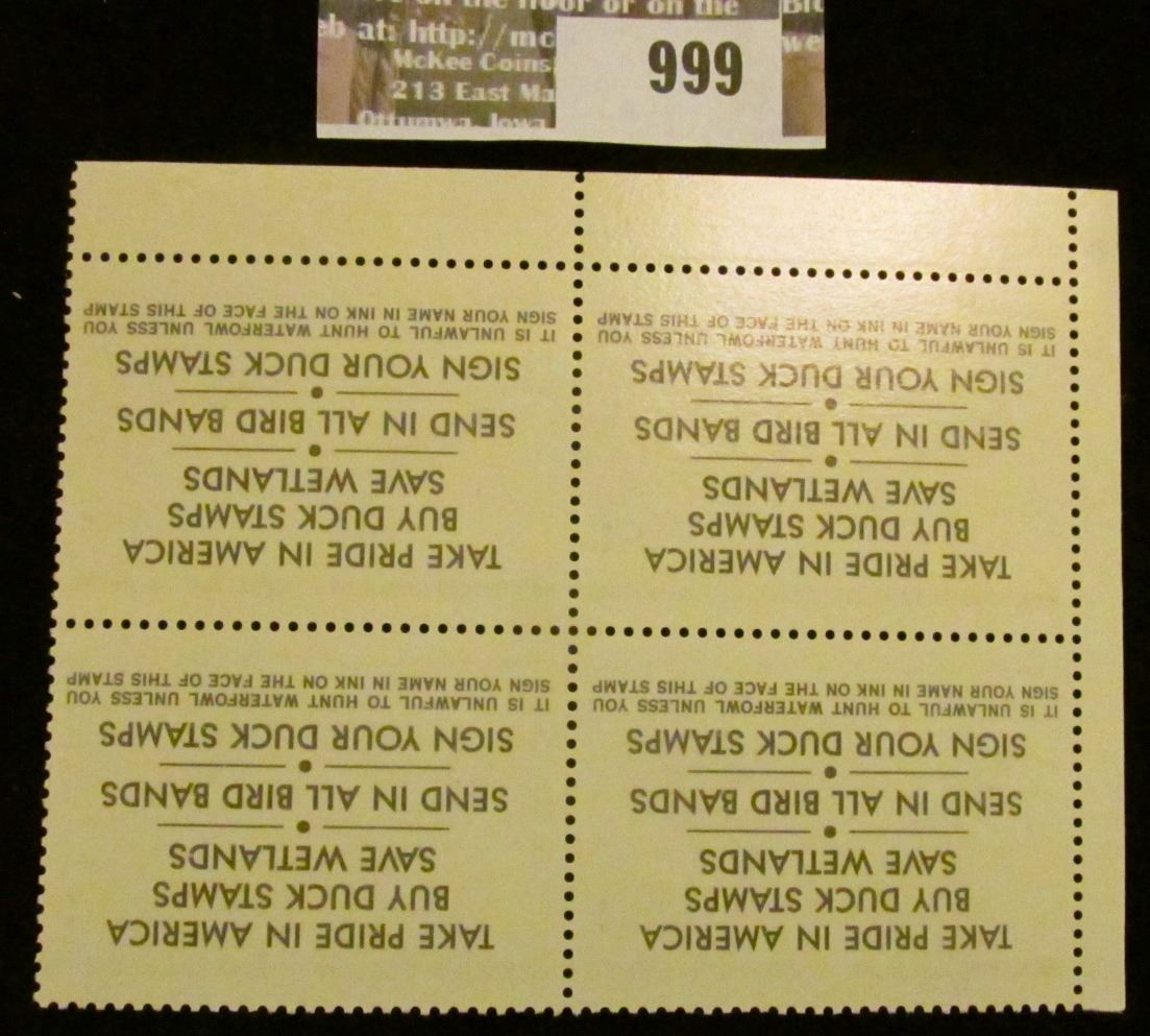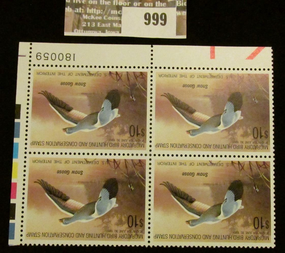1988 Plateblock of Four RW55 U.S. Department of Agriculture Migratory Bird Hunting $10.00 Stamps, Mint condition.