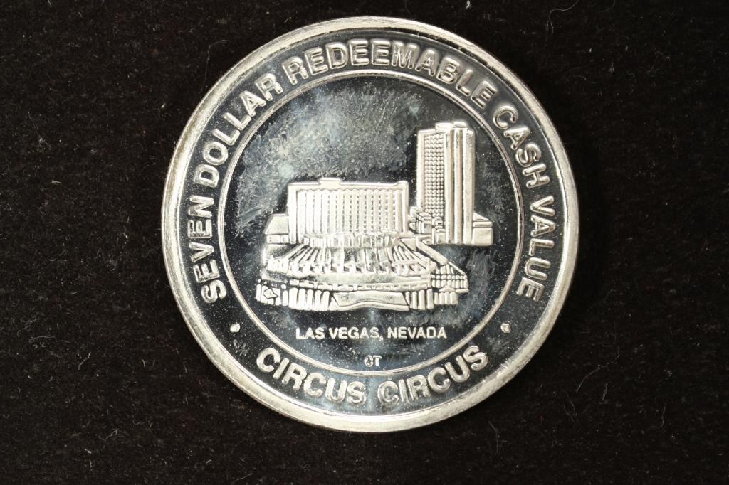 .999 FINE SILVER CIRCUS CIRCUS $7 CASINO TOKEN