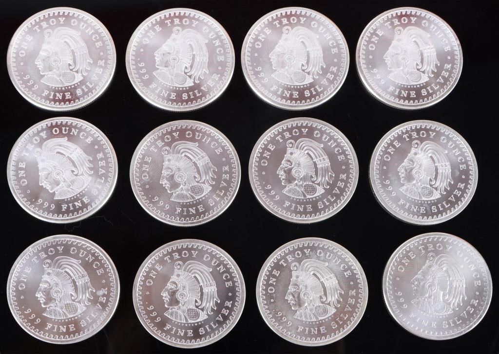 .999 Fine silver 1 Ozt Golden State Mint Aztec Calendar rounds.
