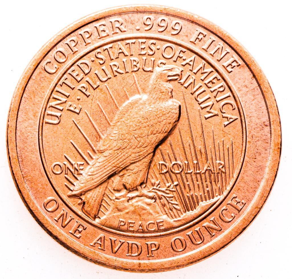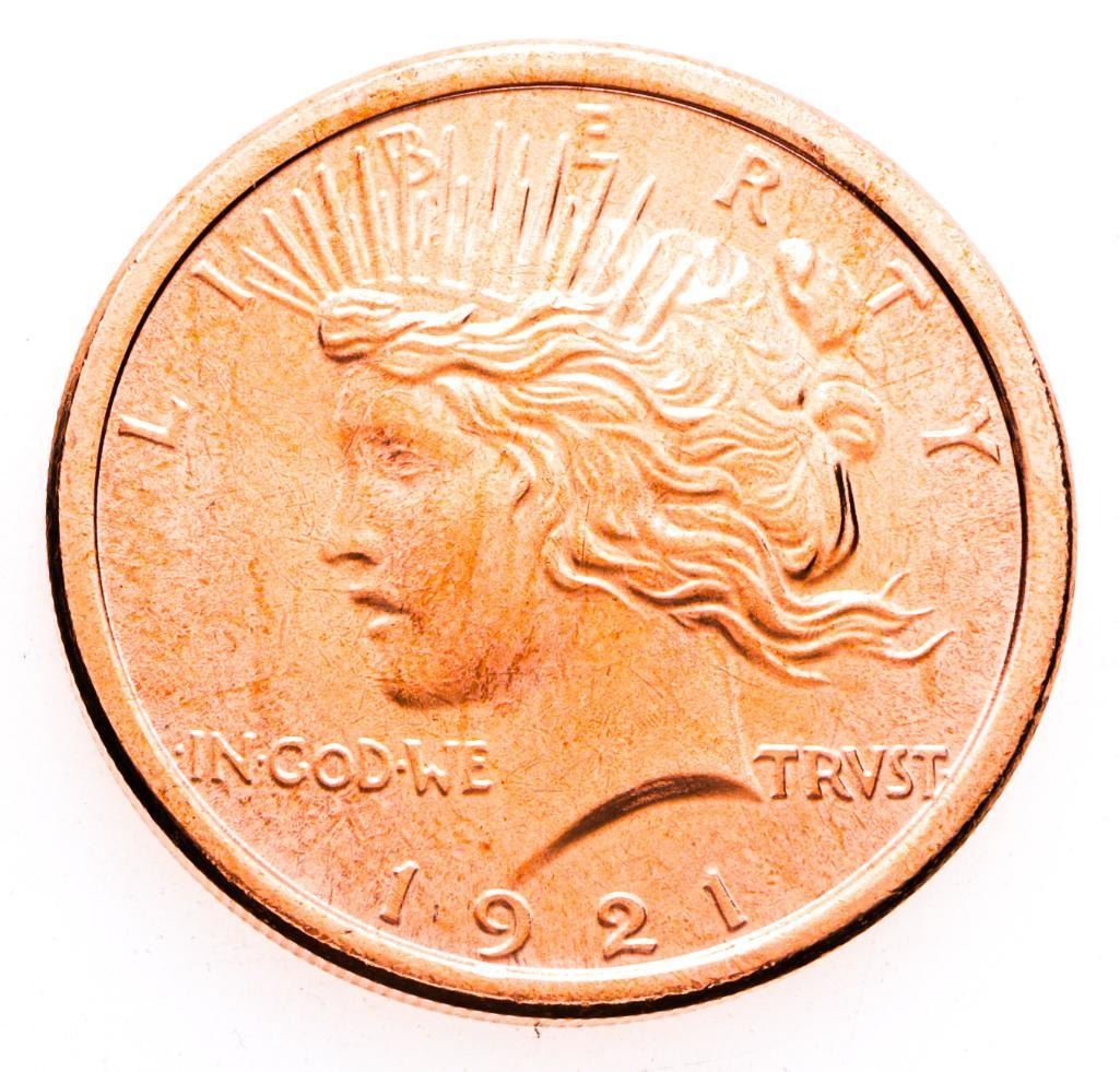 .999 Fine Copper - 1921 Peace Portrait 1 oz. (5)