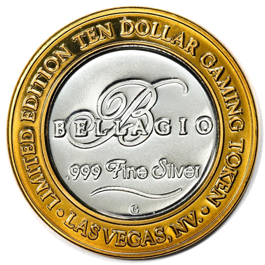 One .999 Fine Silver Bellagio Las Vegas, NV $10 Limited Edition Gaming Token.