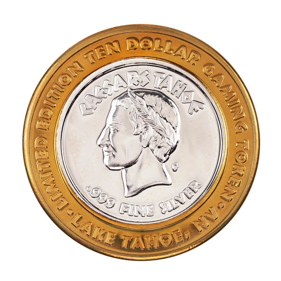 One .999 Fine Silver Caesars Tahoe Lake Tahoe, Nevada $10 Limited Edition Gaming Token.