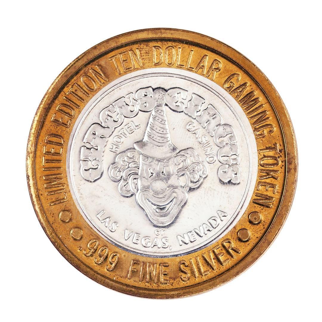 One .999 Fine Silver Circus Circus Las Vegas, Nevada $10 Limited Edition Gaming Token.
