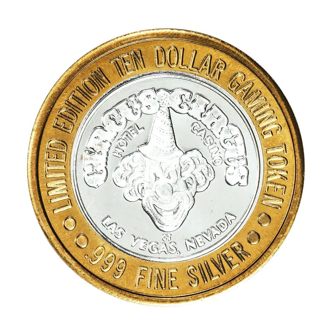 One .999 Fine Silver Circus Circus Las Vegas, Nevada $10 Limited Edition Gaming Token.