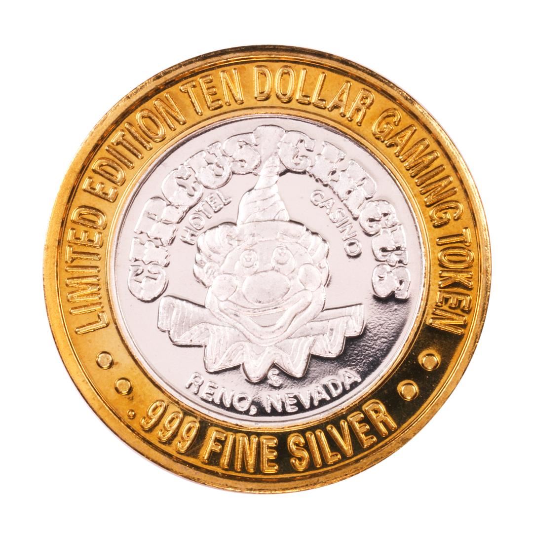 One .999 Fine Silver Circus Circus Reno, Nevada $10 Limited Edition Gaming Token.
