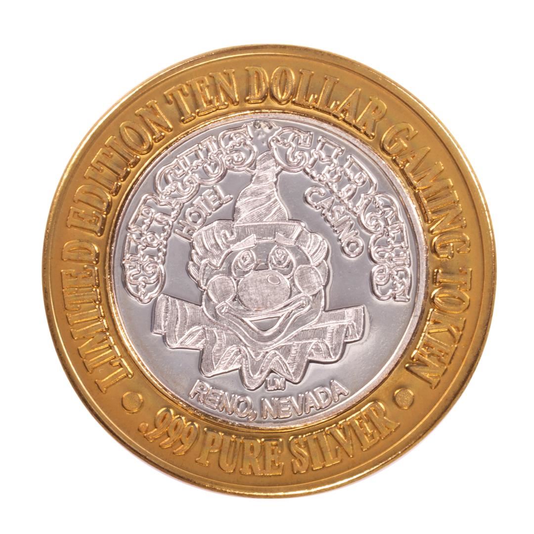 One .999 Fine Silver Circus Circus Reno, Nevada $10 Limited Edition Gaming Token.