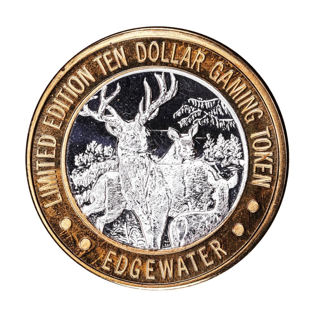 One .999 Fine Silver Edgewater Laughlin, Nevada $10 Limited Edition Gaming Token.