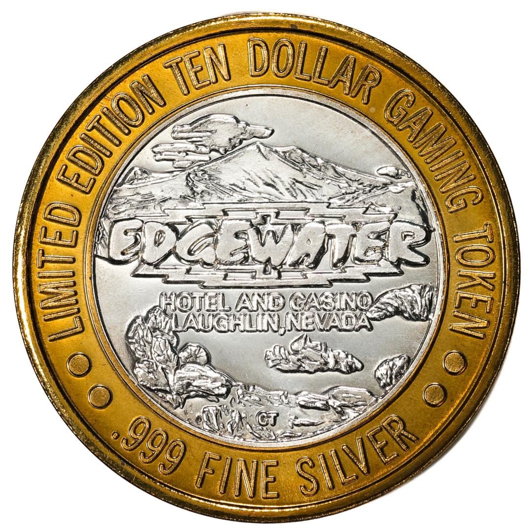 One .999 Fine Silver Edgewater Laughlin, Nevada $10 Limited Edition Gaming Token.