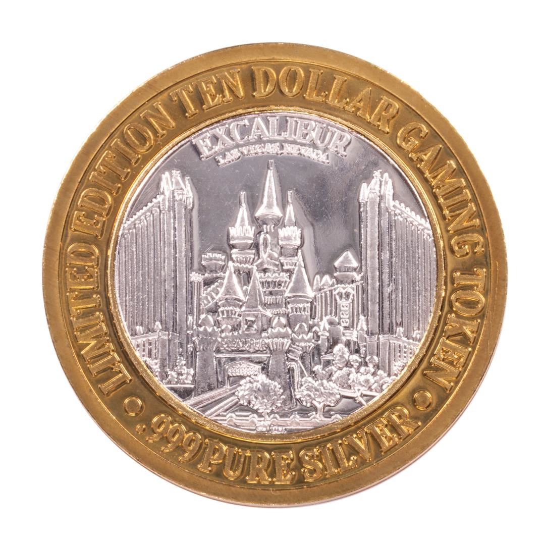 One .999 Fine Silver Excalibur Las Vegas, Nevada $10 Limited Edition Gaming Token.