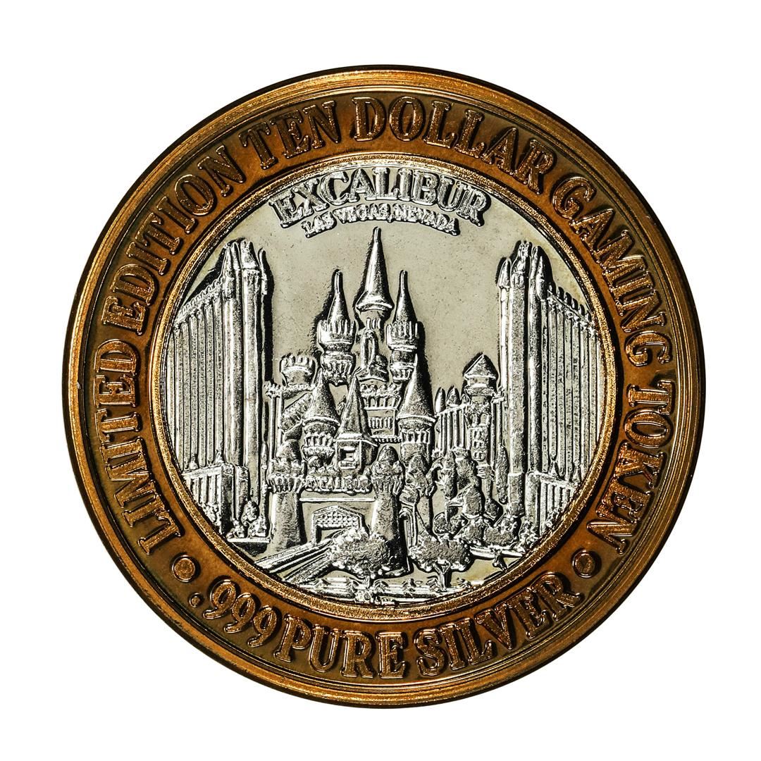 One .999 Fine Silver Excalibur Las Vegas, Nevada $10 Limited Edition Gaming Token.