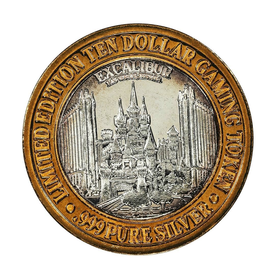 One .999 Fine Silver Excalibur Las Vegas, Nevada $10 Limited Edition Gaming Token.
