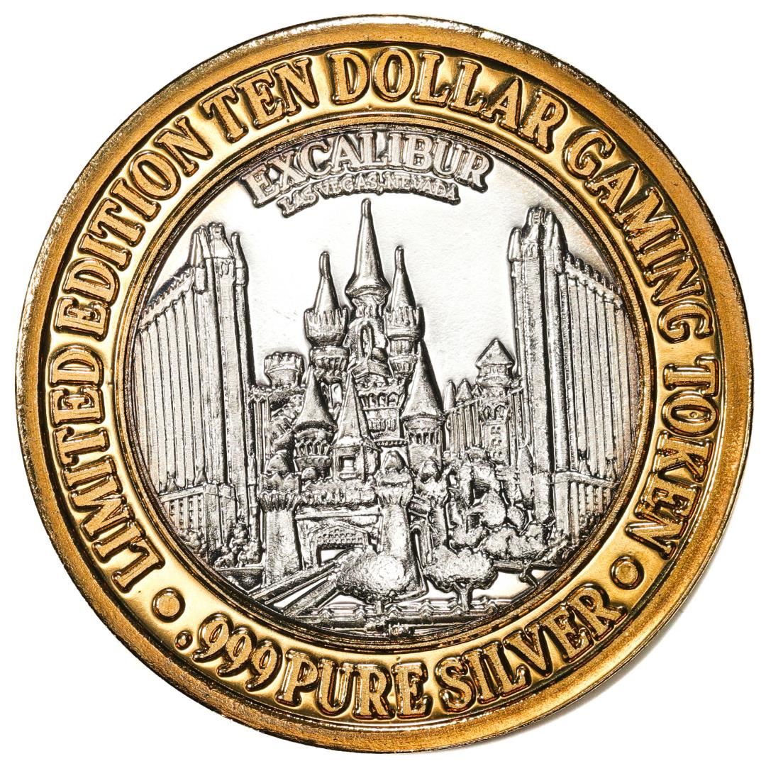 One .999 Fine Silver Excalibur Las Vegas, Nevada $10 Limited Edition Gaming Token.