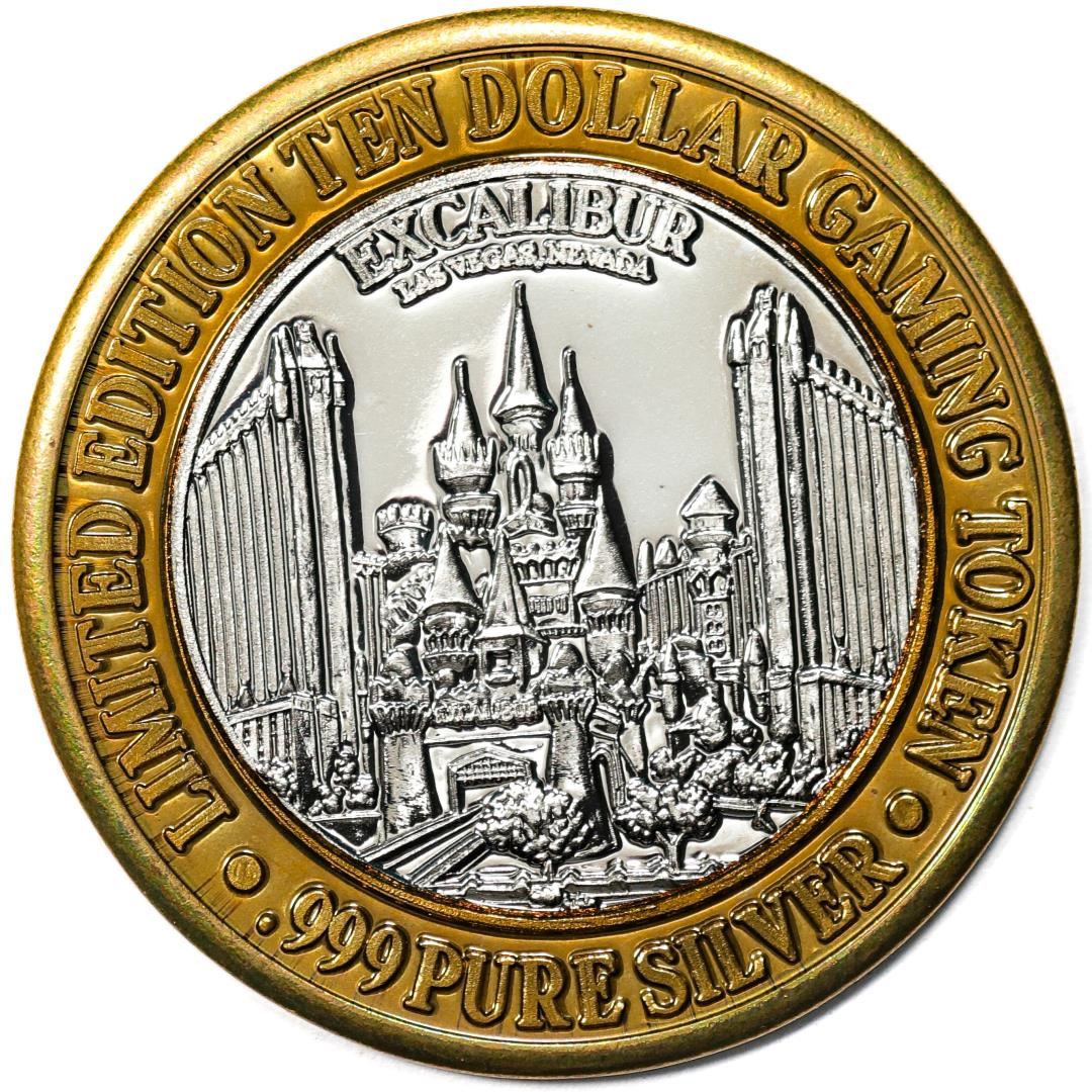 One .999 Fine Silver Excalibur Las Vegas, Nevada $10 Limited Edition Gaming Token.