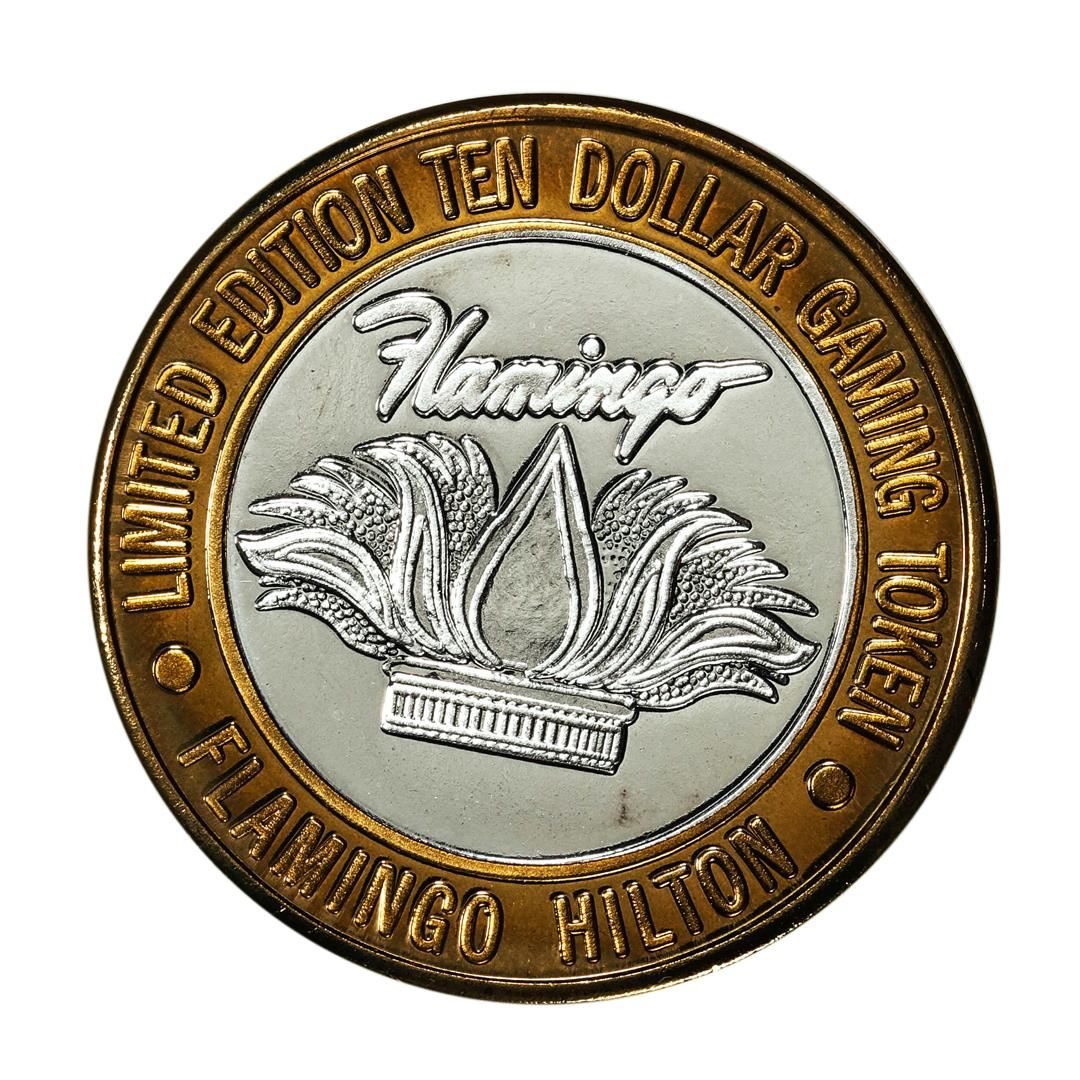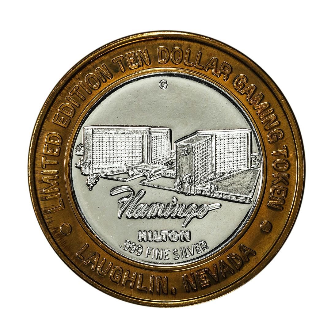 One .999 Fine Silver Flamingo Hilton Laughlin, Nevada $10 Limited Edition Gaming Token.