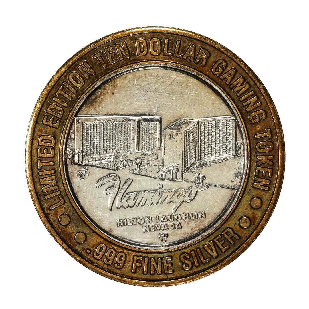 One .999 Fine Silver Flamingo Hilton Laughlin, Nevada $10 Limited Edition Gaming Token.