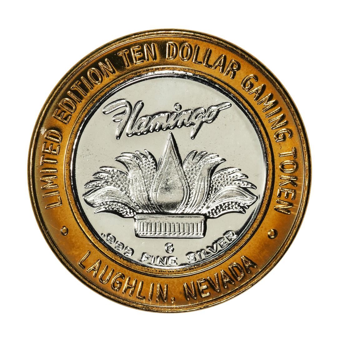 One .999 Fine Silver Flamingo Laughlin, Nevada $10 Limited Edition Gaming Token.