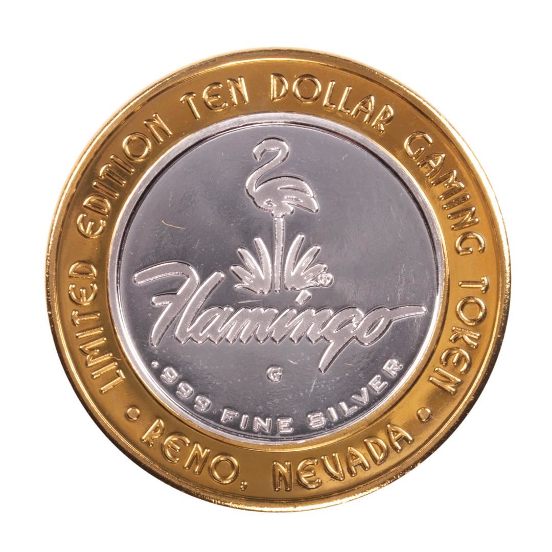 One .999 Fine Silver Flamingo Reno, Nevada $10 Limited Edition Gaming Token.