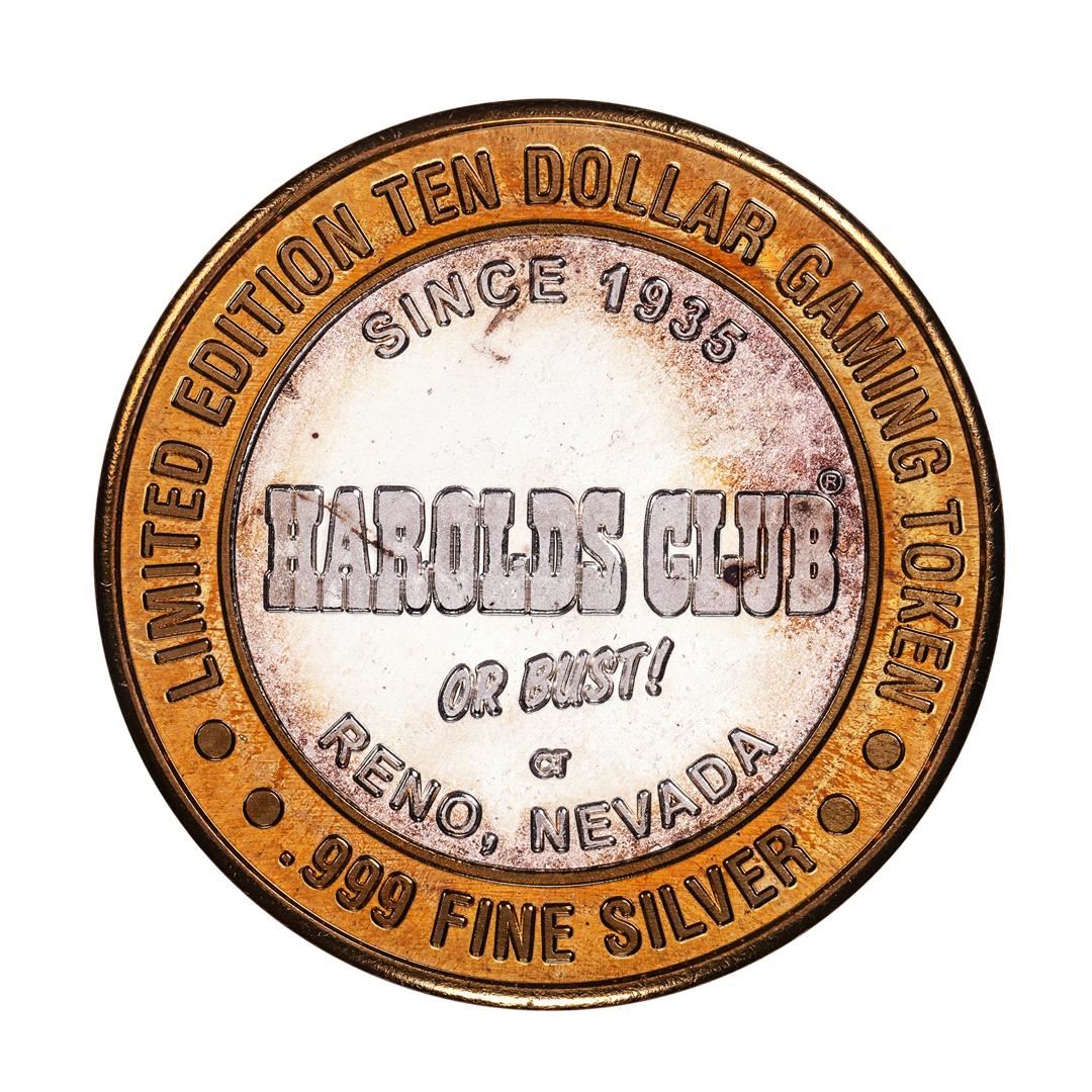 One .999 Fine Silver Harold's Club Reno, Nevada $10 Limited Edition Gaming Token.