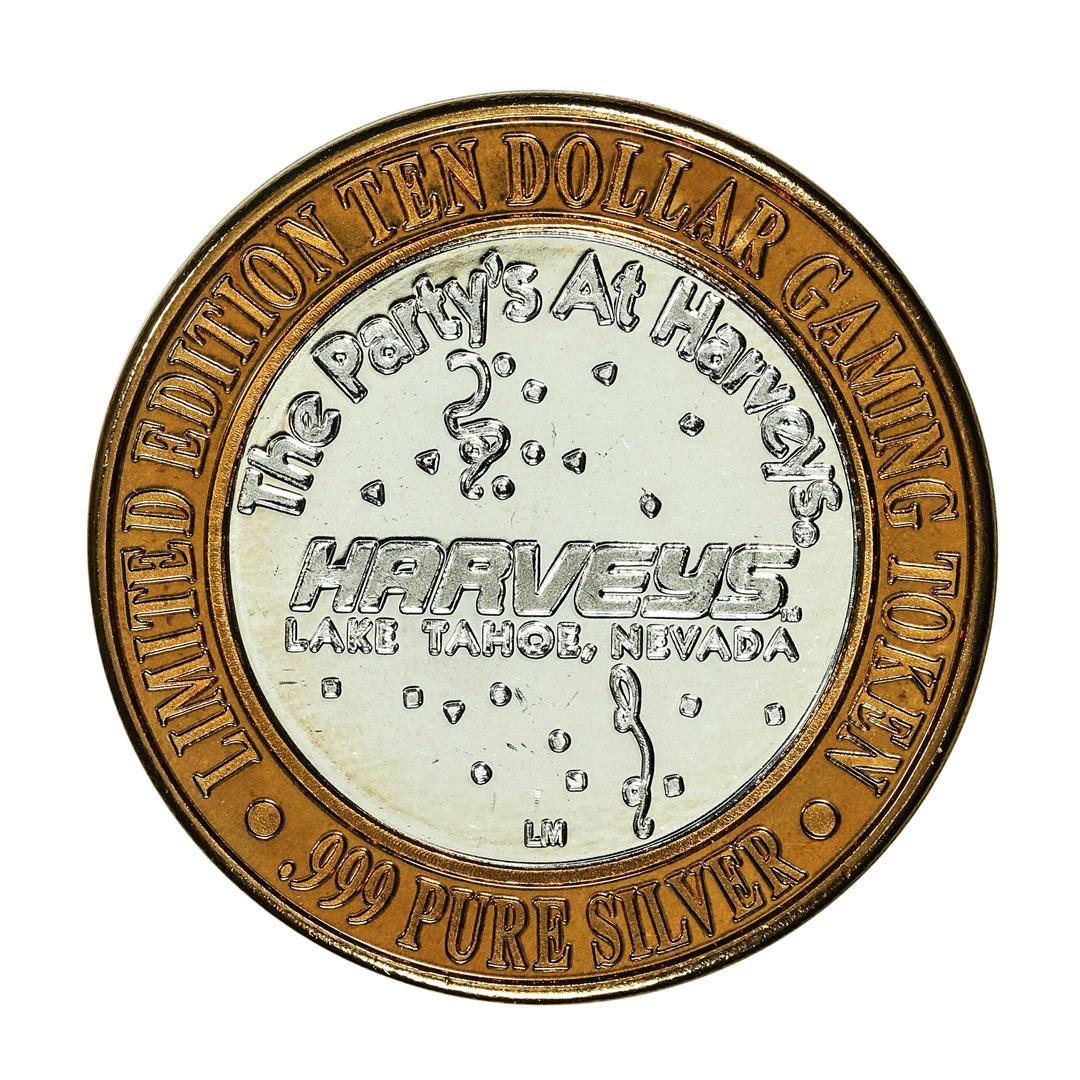 One .999 Fine Silver Harvey's Lake Tahoe, Nevada $10 Limited Edition Gaming Token.