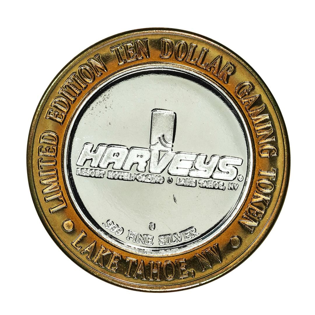 One .999 Fine Silver Harvey's Lake Tahoe, Nevada $10 Limited Edition Gaming Token.