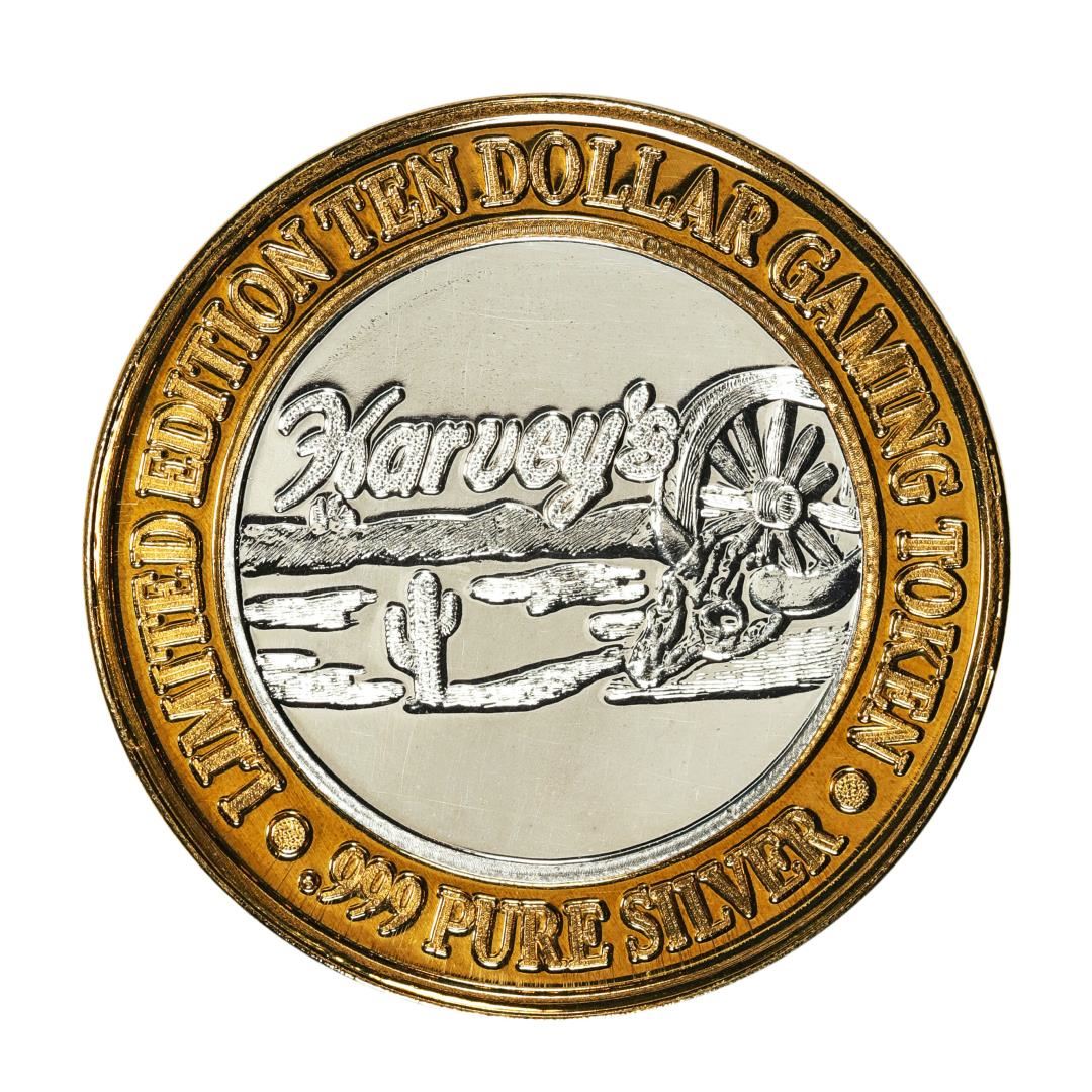 One .999 Fine Silver Harvey's Resort Lake Tahoe, Nevada $10 Limited Edition Gaming Token.