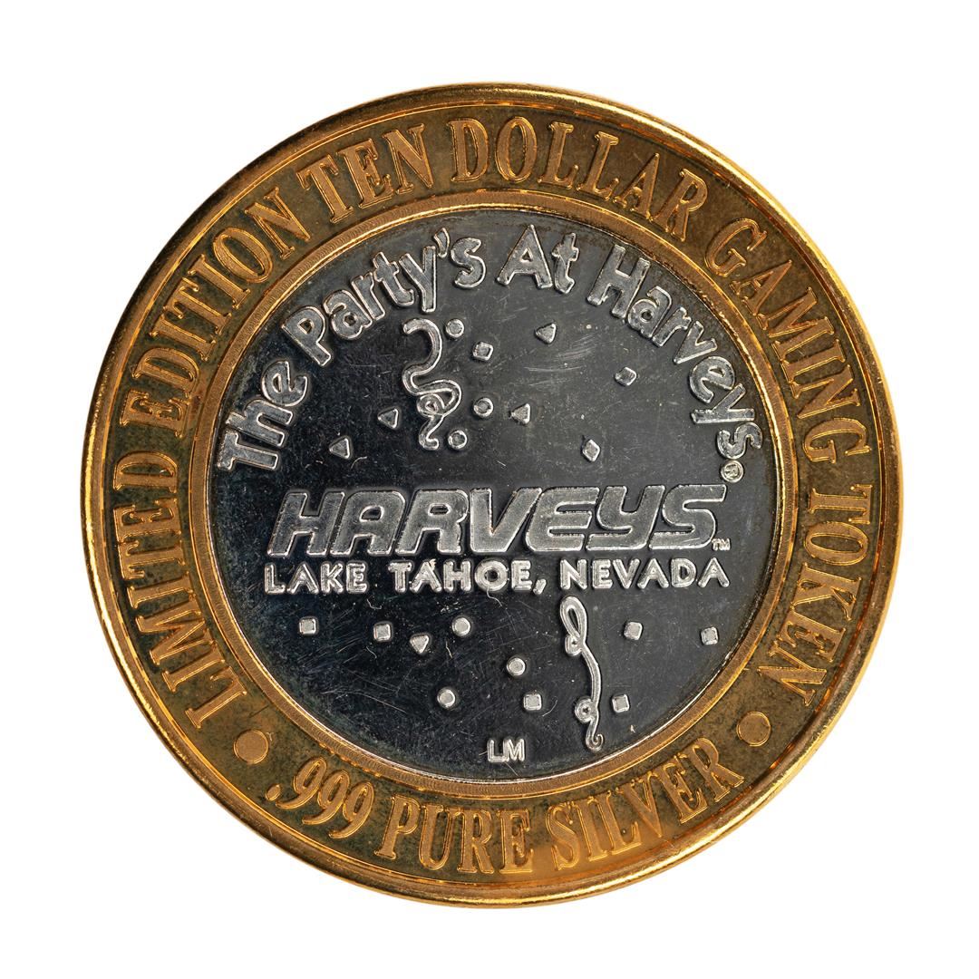 .999 Fine Silver Harveys Resort Lake Tahoe, Nevada $10 Limited Edition Gaming Token