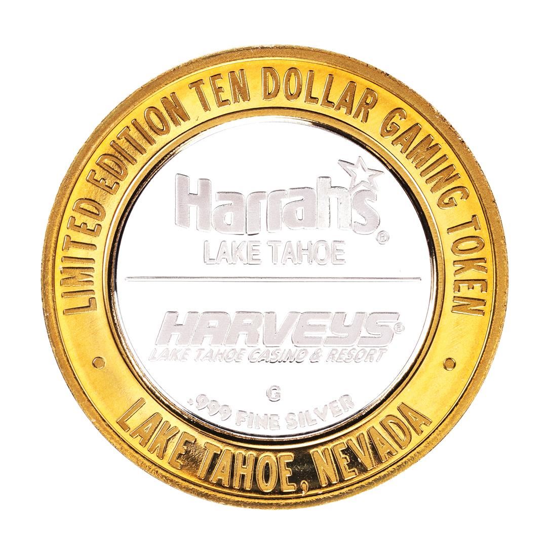 One .999 Fine Silver Harveys Resort Lake Tahoe, Nevada $10 Limited Edition Gaming Token.