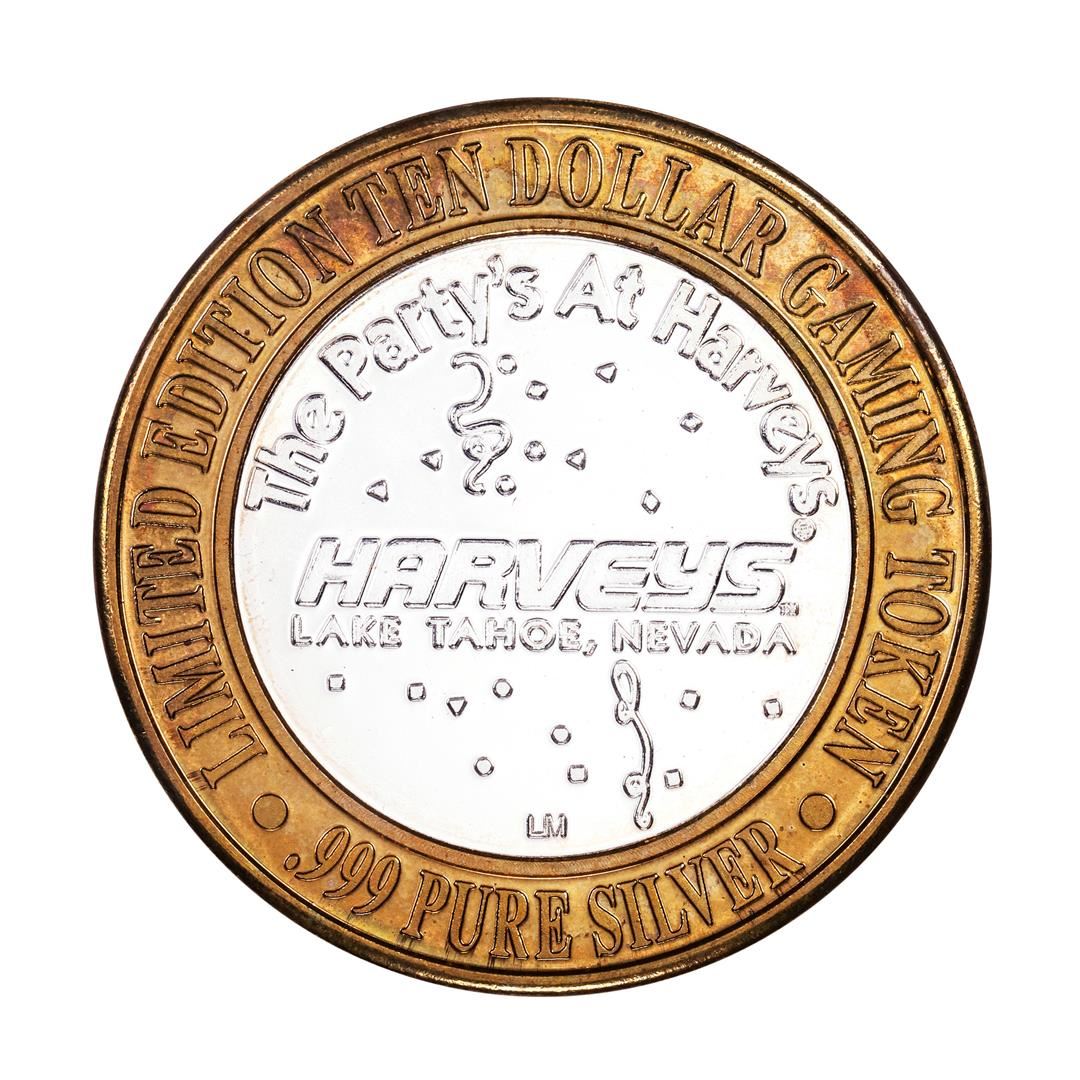 .999 Fine Silver Harveys Resort Lake Tahoe, Nevada $10 Limited Edition Gaming Token
