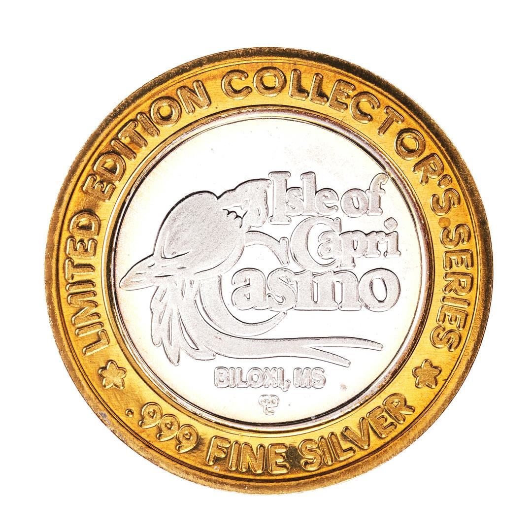 One .999 Fine Silver Isle of Capri Casino Biloxi, MS $10 Limited Edition Gaming Token.