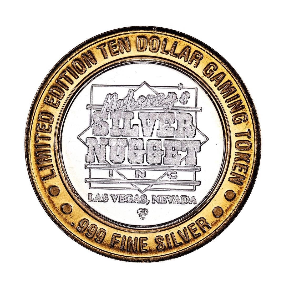 One .999 Fine Silver Mahoney's Silver Nugget Las Vegas $10 Limited Edition Gaming Token.