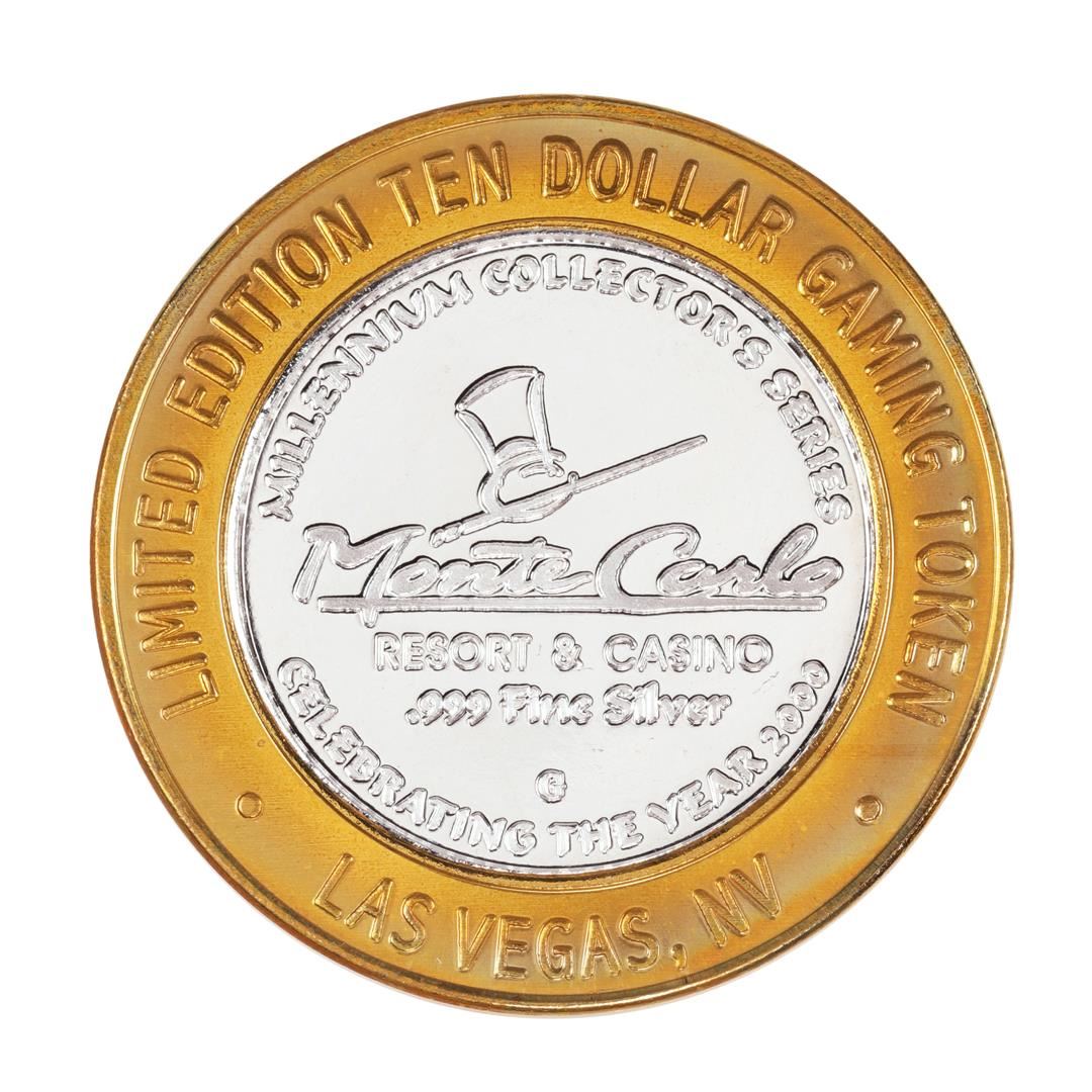 One .999 Fine Silver Monte Carlo Las Vegas, Nevada $10 Limited Edition Gaming Token.