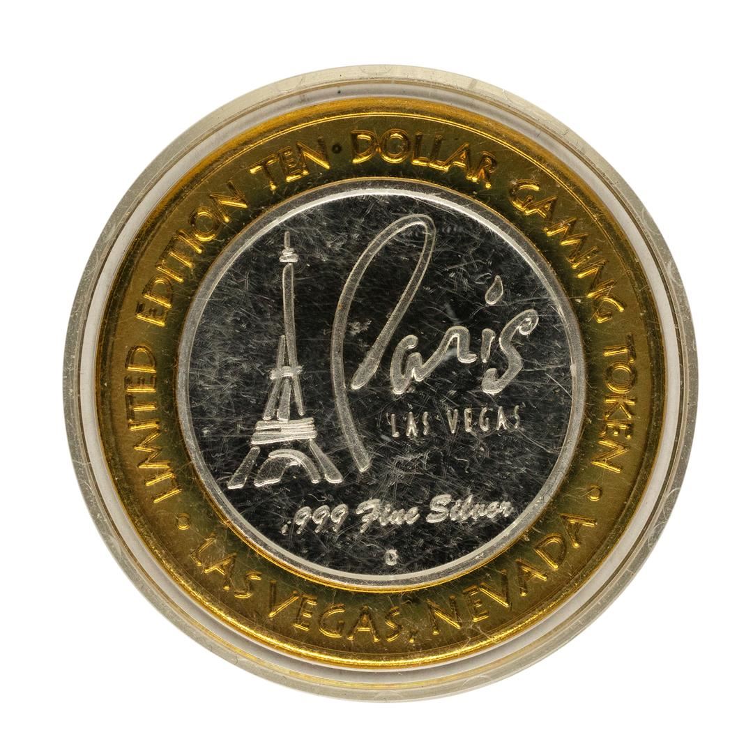 One .999 Fine Silver Paris Las Vegas, Nevada $10 Limited Edition Gaming Token.