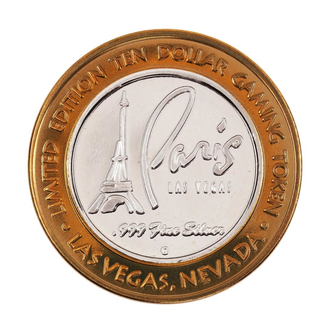 One .999 Fine Silver Paris Las Vegas, Nevada $10 Limited Edition Gaming Token.