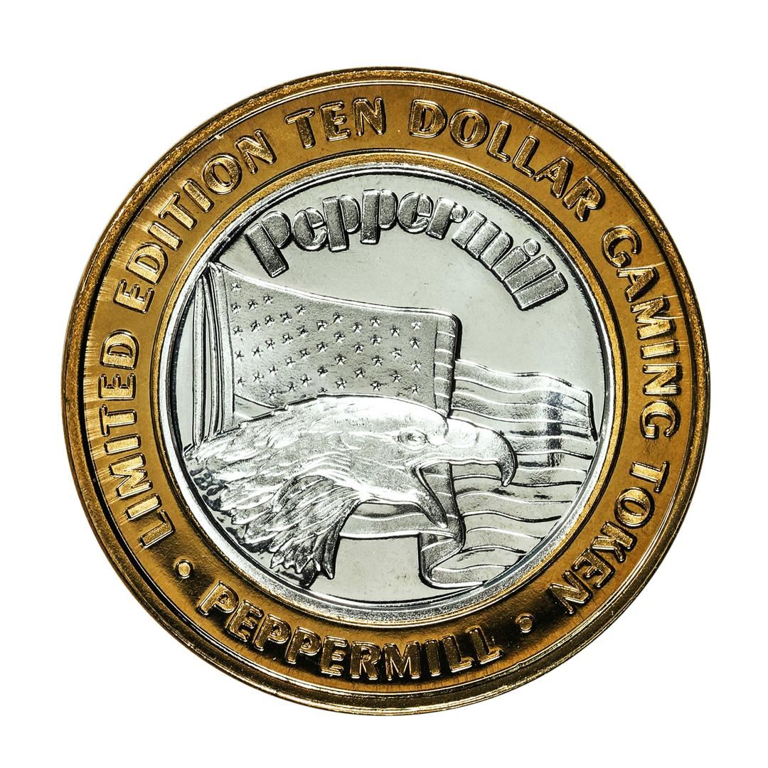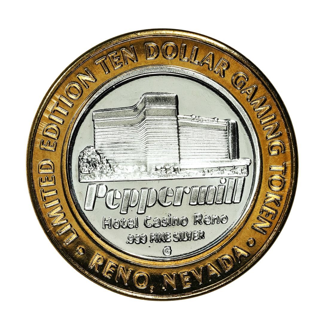 One .999 Fine Silver Peppermill Reno, Nevada $10 Limited Edition Gaming Token.