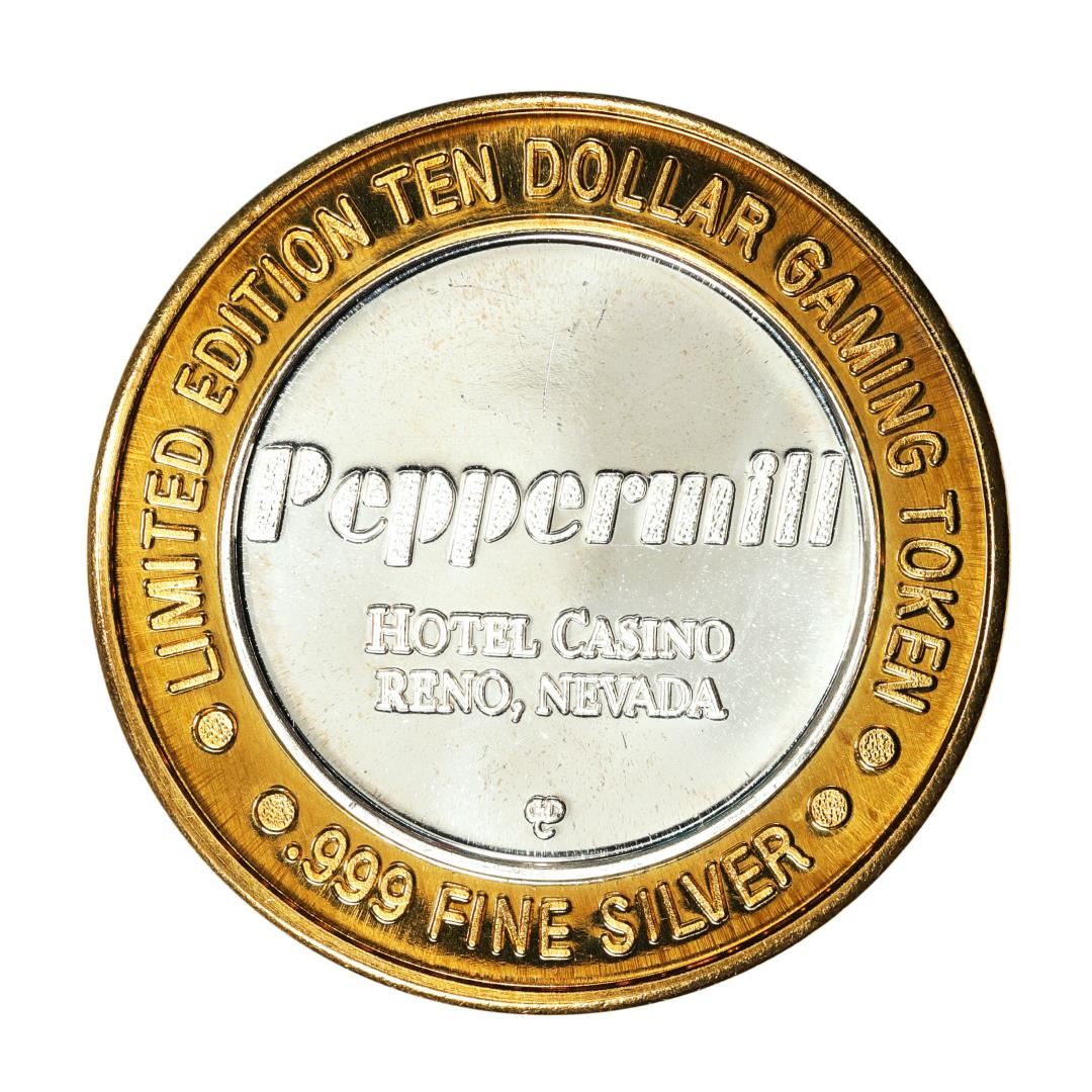 One .999 Fine Silver Peppermill Reno, Nevada $10 Limited Edition Gaming Token.