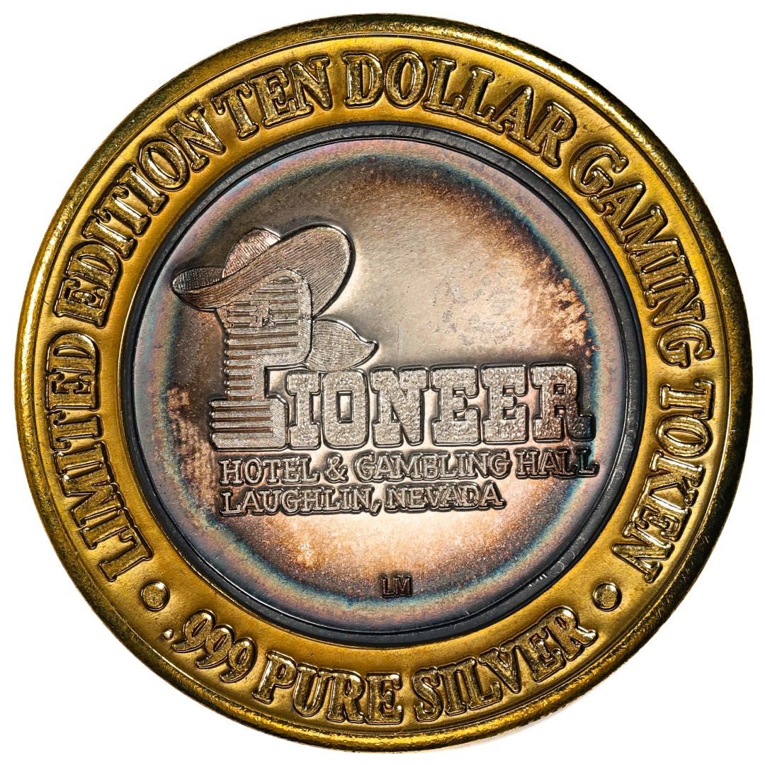One .999 Fine Silver Pioneer Laughlin, Nevada $10 Limited Edition Gaming Token.