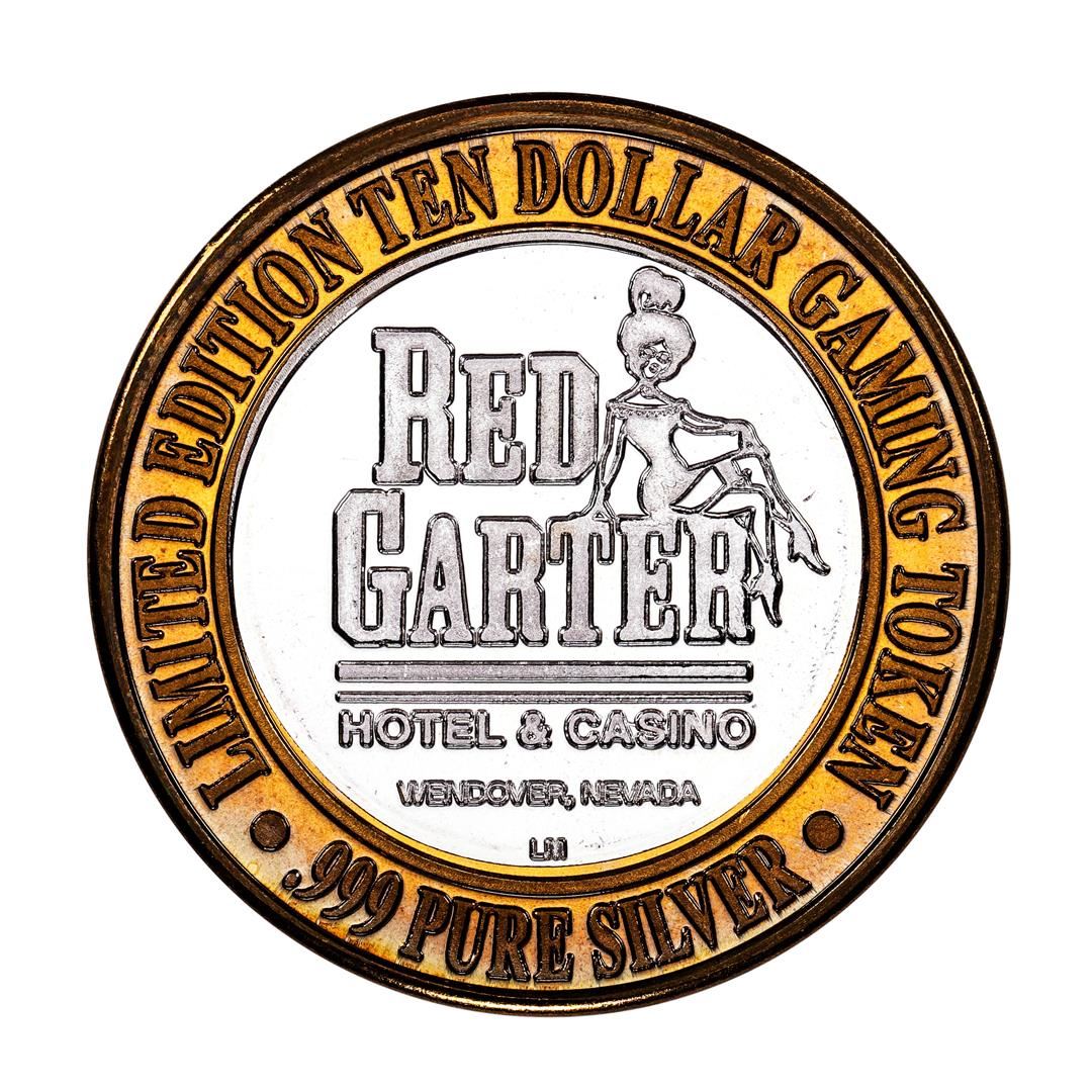 One .999 Fine Silver Red Garter Wendover, Nevada $10 Limited Edition Gaming Token.